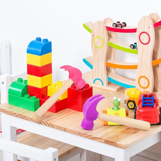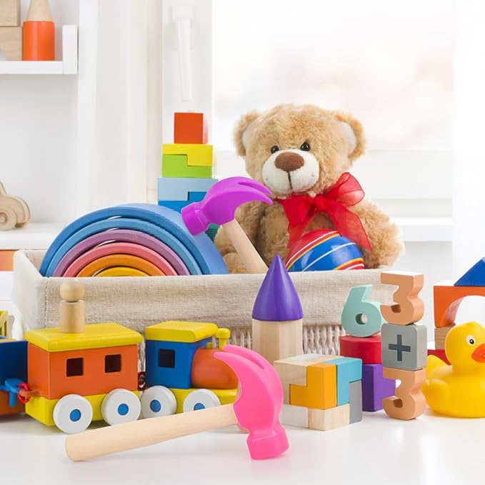 - Size: The package includes 1pcs purple wooden hammer toy and 1pcs rose red wooden hammer toy, each wooden hammer size is 6.5 x 3 inch, comact size and lightweight, suitable for kids to play and convenient to carry.