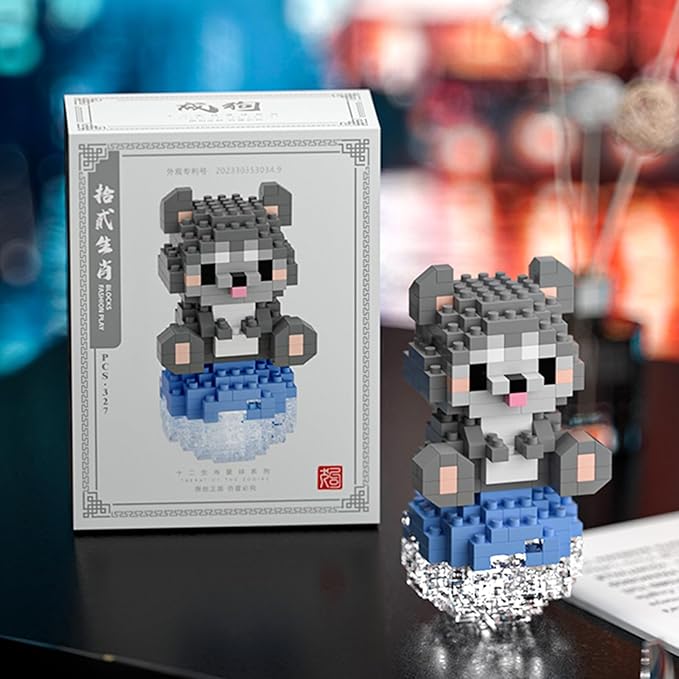 12 Mini Animals Building Blocks Sets Building Block Party Favor for Kids Small Zodiac Animals Pets Horse Dog Monkey Tiger Rabbit Dragon STEM Educational Toys for Boys Girls(Dog)