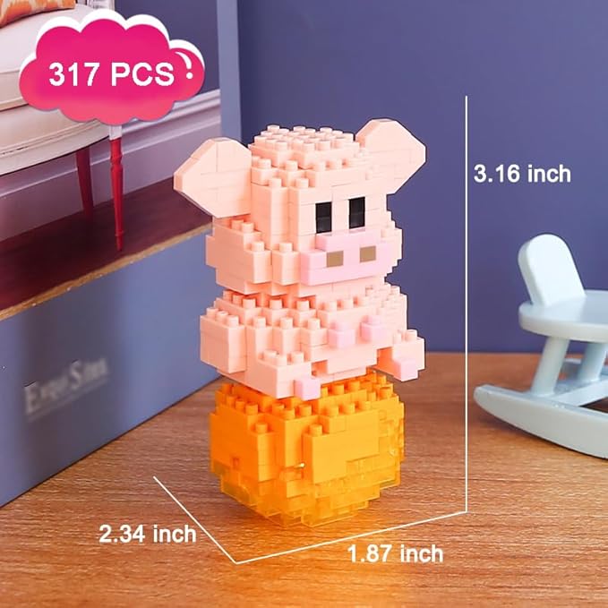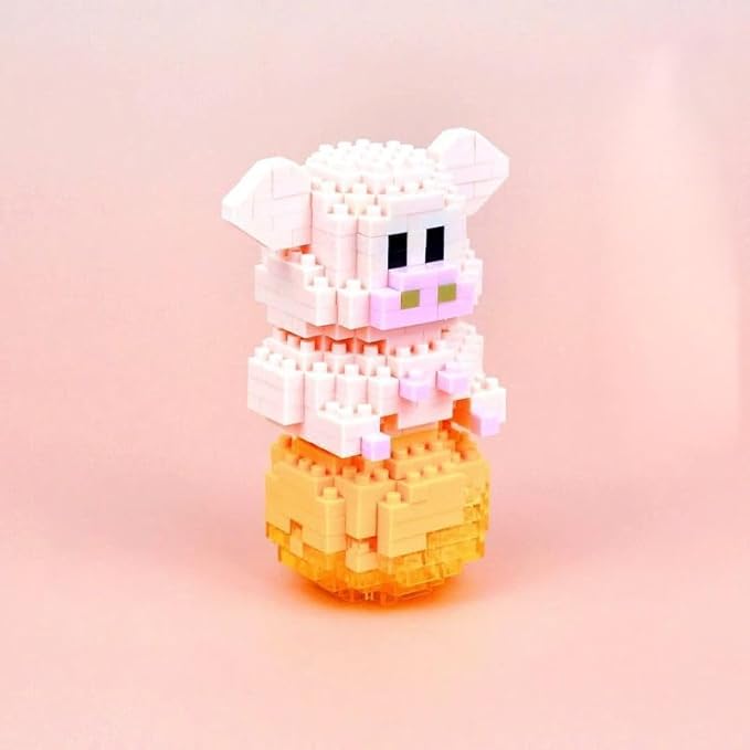 12 Mini Animals Building Blocks Sets Building Block Party Favor for Kids Small Zodiac Animals Pets Horse Dog Monkey Tiger Rabbit Dragon STEM Educational Toys for Boys Girls(Pig)