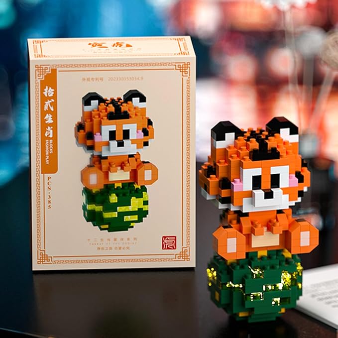 12 Mini Animals Building Blocks Sets Building Block Party Favor for Kids Small Zodiac Animals Pets Horse Dog Monkey Tiger Rabbit Dragon STEM Educational Toys for Boys Girls(Tiger)