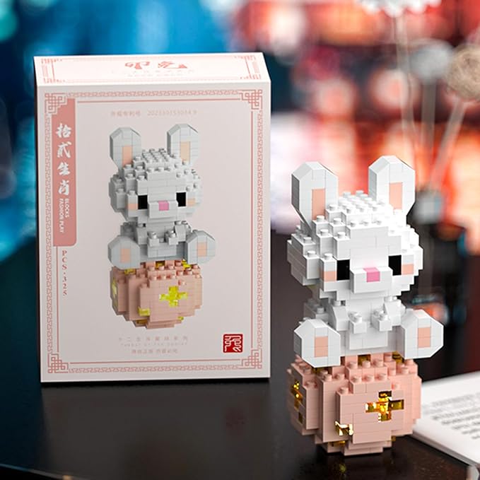 12 Mini Animals Building Blocks Sets Building Block Party Favor for Kids Small Zodiac Animals Pets Horse Dog Monkey Tiger Rabbit Dragon STEM Educational Toys for Boys Girls(Rabbit)