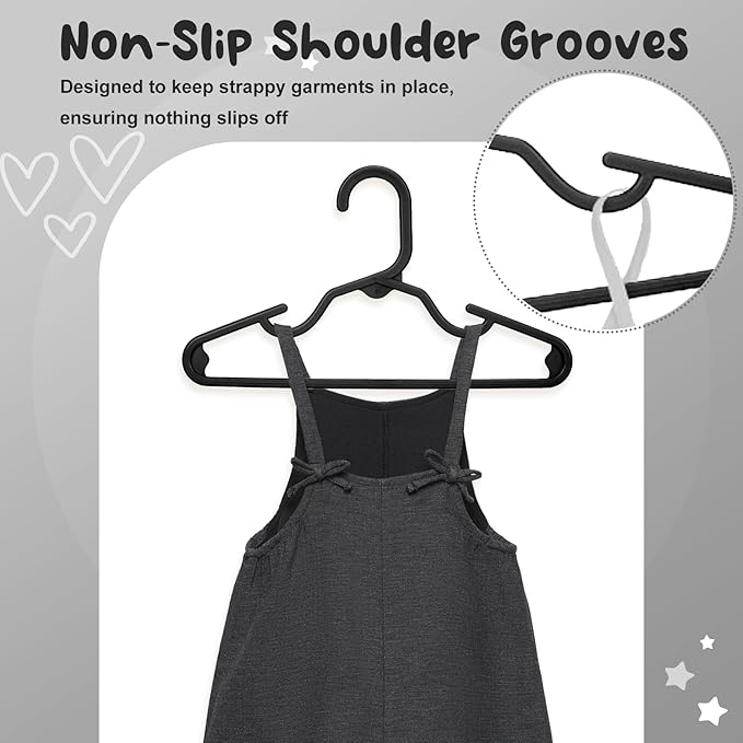 - Non-Slip Notched Shoulders - Prevents clothes from slipping off the hangers, keeping them neatly organized and wrinkle-free. This eliminates the need for frequent adjustments and ensures that garments remain in pristine condition, ultimately saving consumers time and preserving the quality of their baby's clothing