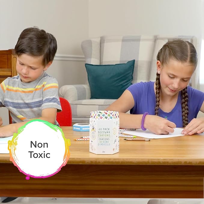 - Rainbow of Imagination: Our beeswax crayons set comes in 60 pieces. Bright shades that enhance every drawing session, from reds and yellows to greens and blues.