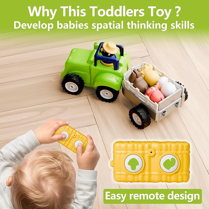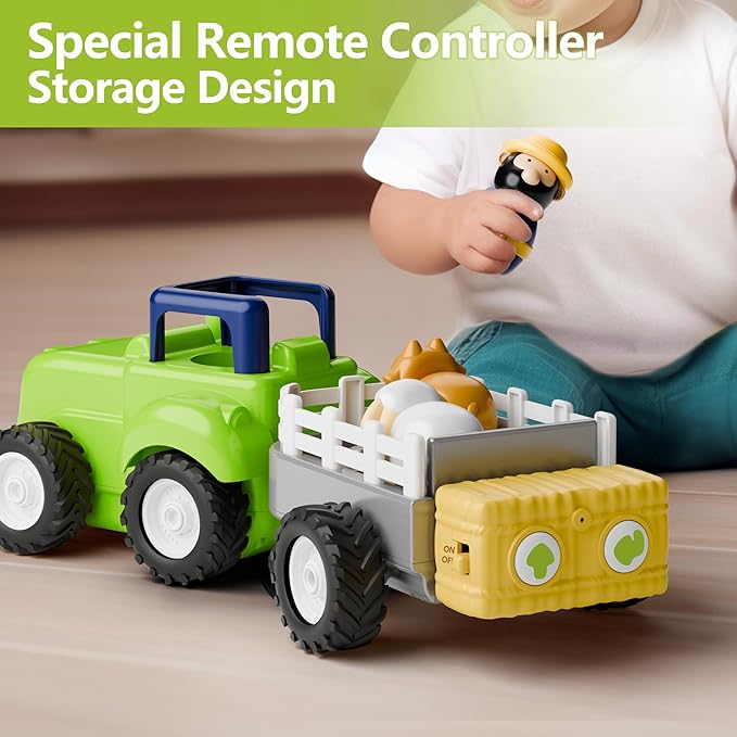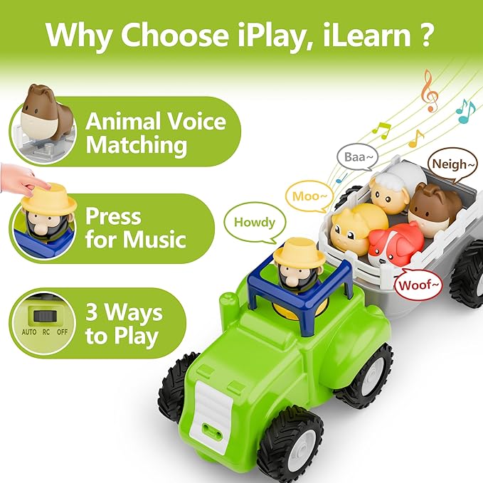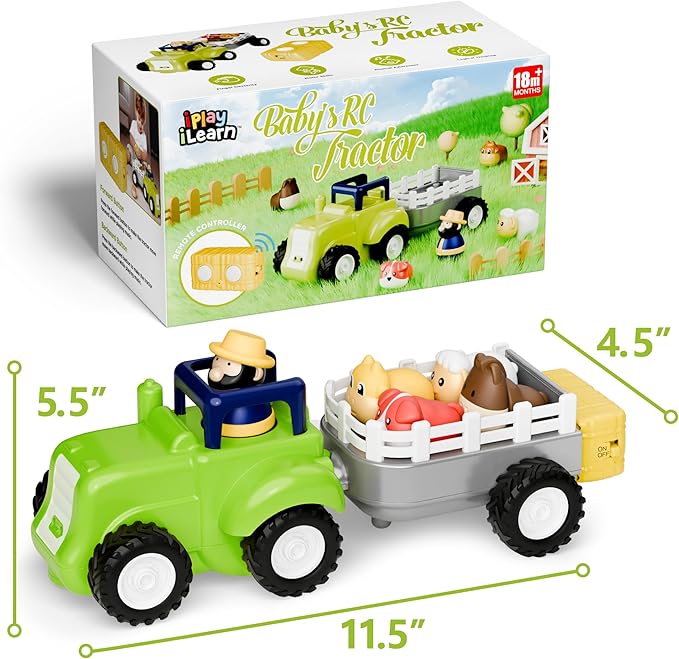 iPlay, iLearn Toddler Remote Control Farm Tractor Toy, Baby RC Trailer Truck Set, Music Pretend Farmer Animals Vehicle Playset W/Sound, Birthday Gifts for 18 24 Month 2 3 4 Year Old Kids Boys Girls