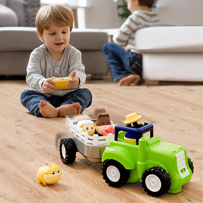 - 【Warm Heart Gifts Ideal】This pretend play farm truck set stimulates children's motor skills and imagination, making it an ideal birthday or Christmas present for babies aged 18 months and beyond.