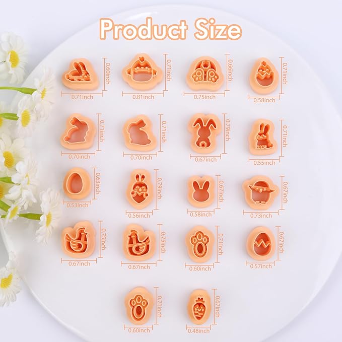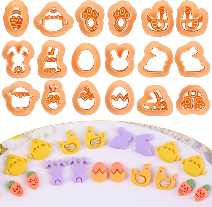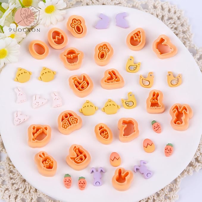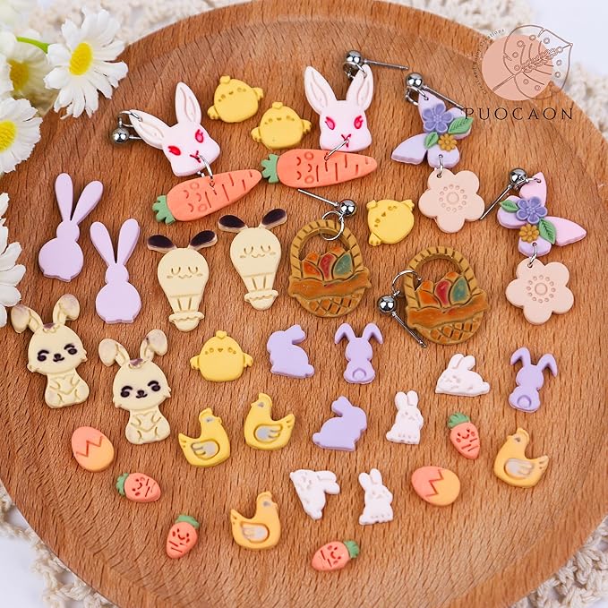 - Puocaon Mini Easter Clay Cutters: You will receive 18 pcs mini clay cutters for stud clay earrings making. These clay cutters got easter theme patterns, like chicken egg, rabbit and carrot clay cutters.