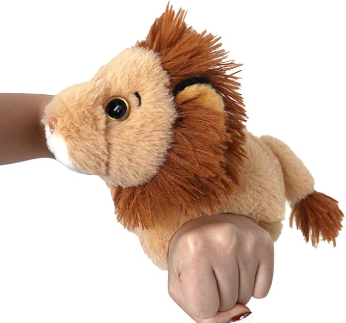 - Tap this medium stuffed animal lion slap bracelet to your wrist or backpack to take wildlife fun with you wherever you go.