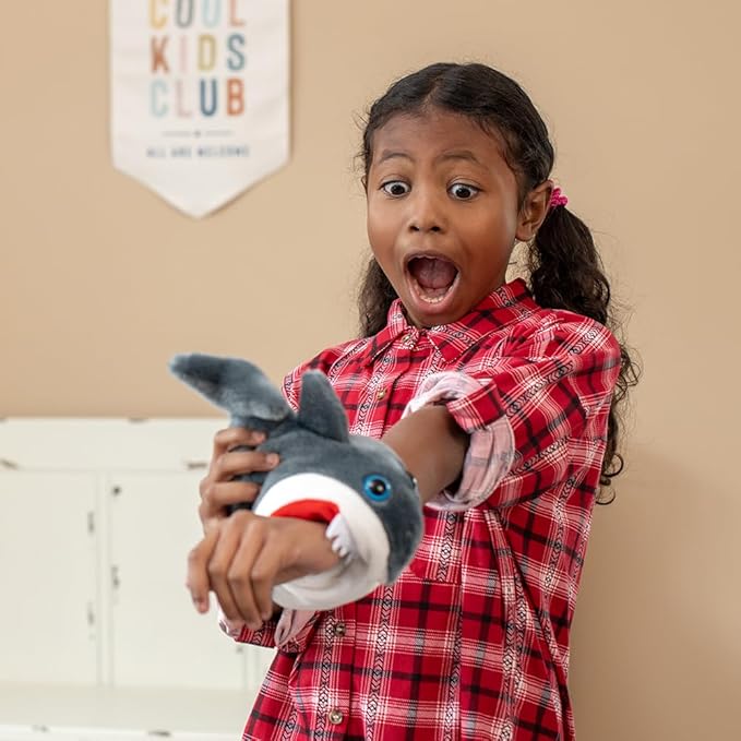The Petting Zoo Shark Stuffed Animal Plushie Slap Bracelet, Gifts for Kids, Slapstix Sealife Animals, Shark Plush Toy, 10 inches