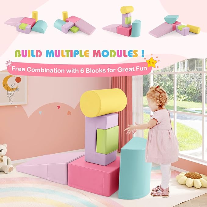 - 【Stimulate Child Development】: The soft foam climber set is designed to stimulate child development in various ways. It promotes physical skills, such as hand-eye coordination, while encouraging creative thinking and color recognition. Let your child explore and learn through play!