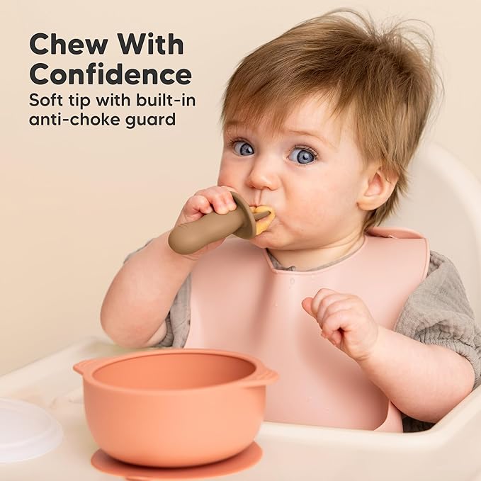 - Baby-Safe Design - Crafted for tiny hands, these baby food utensils are suitable for infants 6-18 months. The built-in anti-choke barrier & ergonomic grip handle allow your baby to explore new foods safely, perfect for the first stage BLW.