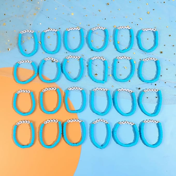 24 Pcs Cheerleader Gifts for Girls Handmade Friendship Bracelets for Teen Girls Stretch Cheer Bracelets Y2k Cheer Stuff Stackable Clay Bead Bracelets Bulk Teens Birthday Christmas Party Favors