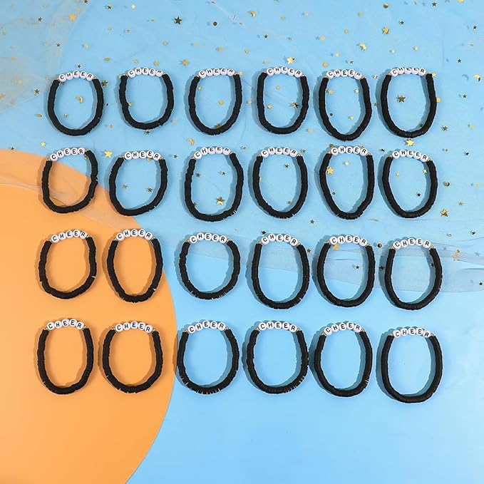24 Pcs Cheerleader Gifts for Girls Handmade Friendship Bracelets for Teen Girls Stretch Cheer Bracelets Y2k Cheer Stuff Stackable Clay Bead Bracelets Bulk Teens Birthday Christmas Party Favors