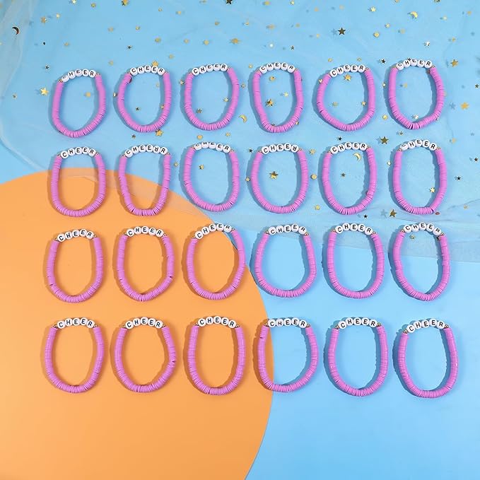 24 Pcs Cheerleader Gifts for Girls Handmade Friendship Bracelets for Teen Girls Stretch Cheer Bracelets Y2k Cheer Stuff Stackable Clay Bead Bracelets Bulk Teens Birthday Christmas Party Favors