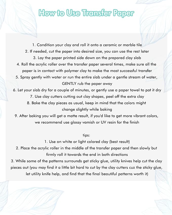 - Fun and Easy to Use: You will find these floral polymer clay transfer paper easy to use. If you are new to polymer clay transfer paper, you can refer to our product picture for help. There are some detailed tips for you.