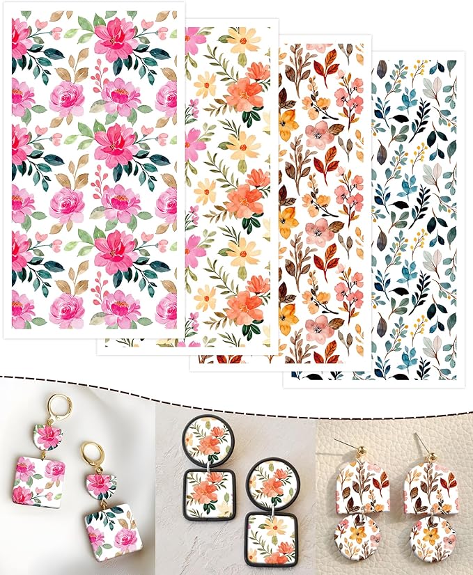 - Plant Polymer Clay Transfer Paper: It's a new model for our floral polymer clay transfer paper set. Still got 20 pieces, 4 design and every design got 5 sheets. You can use these floral polymer clay transfer paper make clay earrings.
