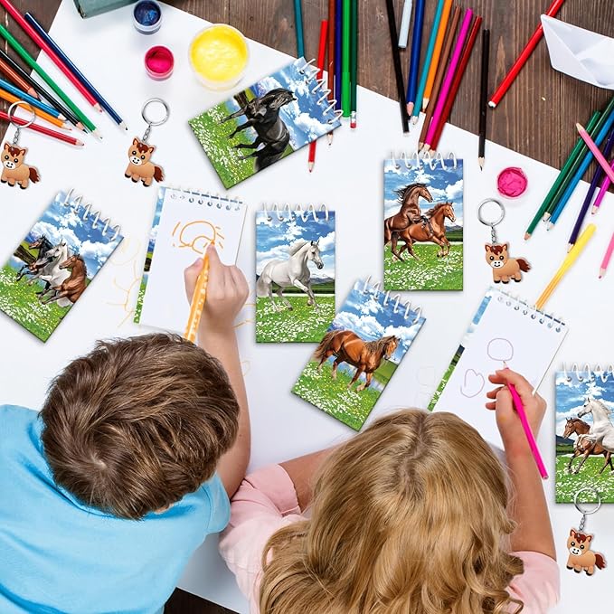 - Reliable Material: The horse keychain and bracelet are mainly made of silicone material, The horse theme goody bags, horse stickers, and horse mini notepad are made of heavy recyclable paper card.