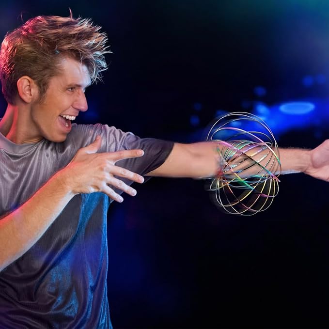 - EASY TO PLAY: Put on the flow ring magic bracelet and adjust the arm, just two simple steps, from ring to zing. The infinity ring in the galaxy wakes up the ring fidget toys and you can run this arm spinner smoothly slides down your arms, legs, or from arm to arm. This transformable fidget spinner toys can be used as a rave dance accessories or dance floor props, providing enjoyment and excitement for children and adults.