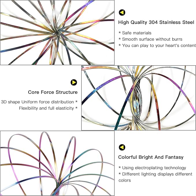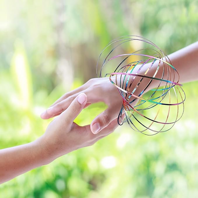 - KINETIC FLOW RING FIDGET SPINNER MAGIC BRACELET: 3D shaped bracelet spinner, kinetic energy spring, infinity loop flow rings, spinning bracelet spiral for children and adults. Arm twirler gyro spinning mobile rolling pressure ring toys for kids ages 8-12 3-5 6-8. This magic toys are perfect as party favors, goodie bag fillers, carnival prizes, festival accessories. Great for raves, parties, concerts, costumes, light shows, music festivals or travel.