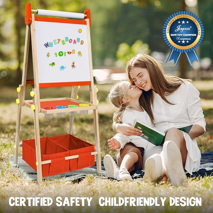 Joyooss Art Easel for Kids Easel for Toddlers, Adjustable Standing Wooden Toddler Easels Kids Magnetic Double Sided Whiteboard & Chalkboard, Art Easel for Kids Age 2-4 4-8 9-12 Toddler Art Easel Kid