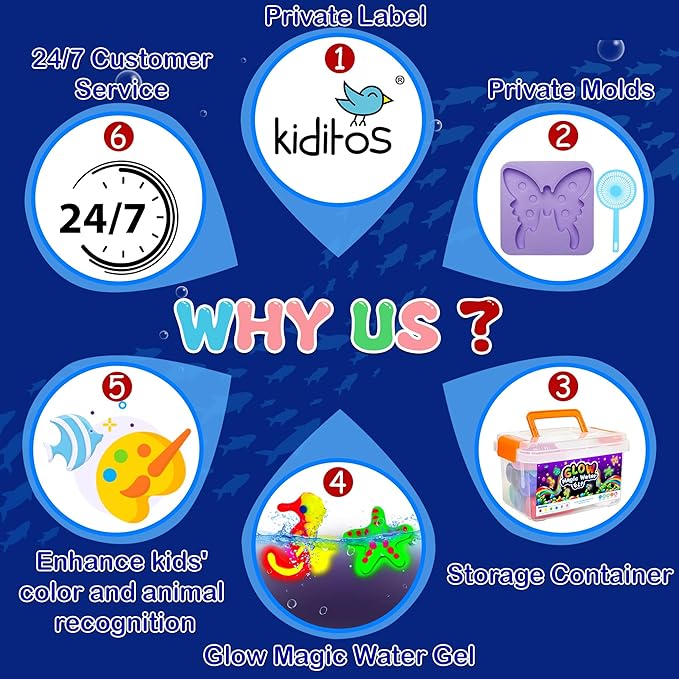 Kiditos Glow in The Dark Magic Water Elf Toy Kit, Magic Aqua Fairy Water Gel Kit with 6 Glow Colors and 6 Molds. Christmas Gifts, Birthday Gifts, Party Favors, Arts & Crafts DIY STEM for Kids