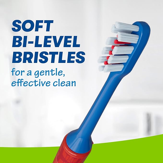 - SOFT BI-LEVEL BRISTLES: This soft bristled brush features angled bi-level bristles that help break up plaque and massage the gums for a healthier smile