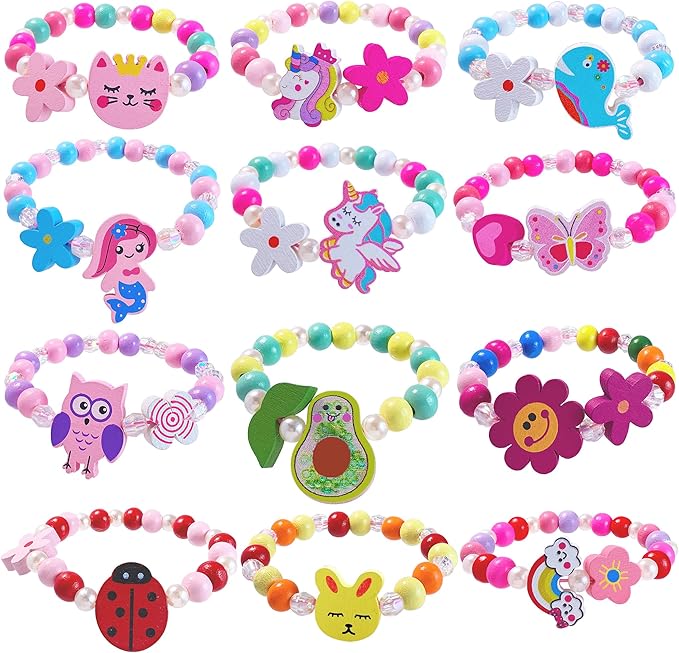 - Magical Animal Bracelets Set: Discover 12 charming pastel beaded bracelets featuring beloved unicorns, mermaids, butterflies, flowers, and adorable charms. Great for little girls aged 3-12, they make delightful birthday present or party favors
