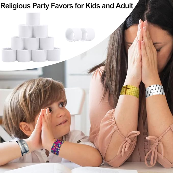 30Pcs Sublimation Slap Bracelets Blank, Slap Bracelets Wristbands for Sunday School Supplies Kids Gifts Birthday Party Favors (Religious)