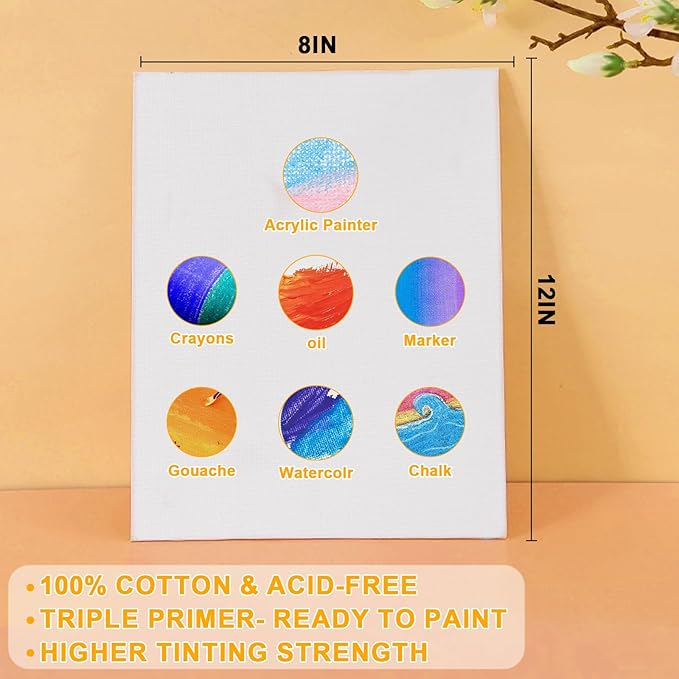 - Included Components : 8 packs of 80 brushes, 8 wood easels, 8 canvas panels, 8 palettes