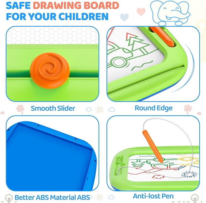 - Thoughtful Design for Toddlers 1-3 Years Old: The magnetic pen provides smooth, precise lines. The eraser knob glides easily and smoothly, erasing in a second for a clean drawing area for new drawings. The educational toys for 1, 2, 3 year old magnet drawing board is designed for both right-handed and left-handed, ensuring all kids can enjoy its benefits.