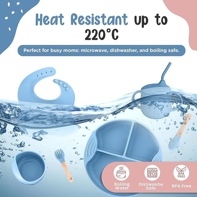 - [Healthy Premium Material] Our silicone feeding set is made from high-quality food-grade silicone, completely free from harmful substances like BPA, PVC, and phthalates. Your babies’ safety and well-being are our top priority as they grow. The soft and smooth design ensures no sharp edges, preventing any bumps or scratches