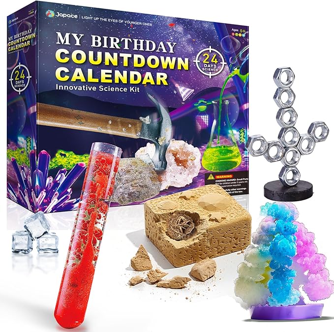 - UNIQUE 24-DAY BIRTHDAY COUNTDOWN CALENDAR: Japace 24 Days Birthday Countdown Calendar for Kids is a birthday calendar designed for children. It contains 24 scientific experiments, with anticipation, allowing children to open a window every day and explore the mysteries. The birthday countdown calendar can not only increase children's expectations for their birthdays, but also help them learn scientific knowledge, nurturing them into budding scientists.