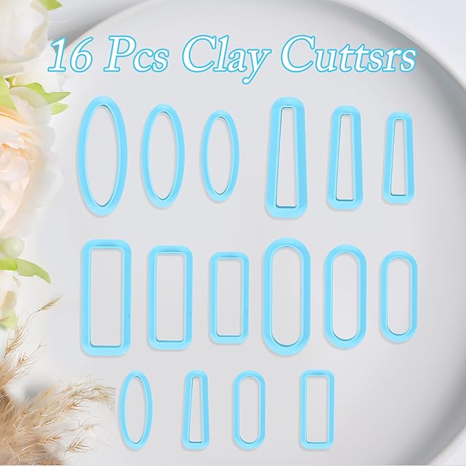 Sitsink Basic Polymer Clay Cutters -16 Pcs Dangle Clay Cutters for Polymer Clay Jewelry, Rectangle Polymer Clay Earring Cutters, Oval Clay Jewelry Cutters, Basic Drop Dangle Clay Earring Cutters