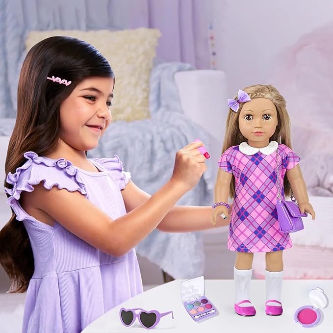 - WHAT IT FITS: Our dress up makeup set is perfect for an American 18 inch doll, My life doll, Our generation doll, and most accessories fit in a backpack.