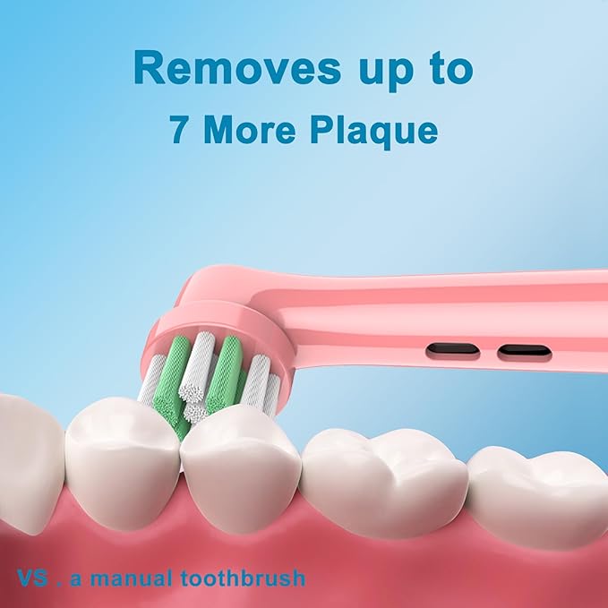 - Extra Soft Bristles: The kids electric Toothbrush heads use bristles ranging from 0.1-0.15 mm, which are as light and gentle as feathers. The rounded bristle end are fine and dense, allowing for easy and pleasant teeth brushing, encouraging children to love brushing their teeth.