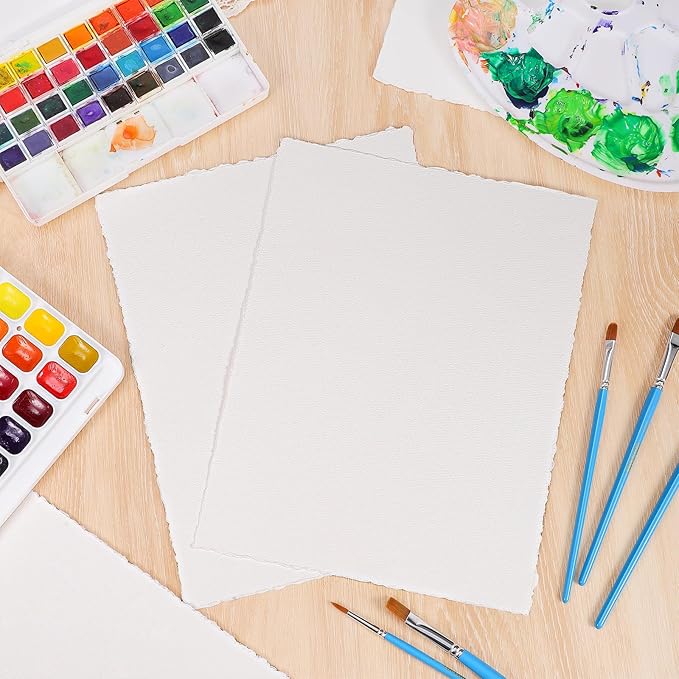 25 Sheets Watercolor Paper 8.5 x 11, 300 GSM Deckled Edge Paper Rough/Textured Handmade Paper Cotton Paper for Watercolors, Wedding Invitations, Cards, Crafts