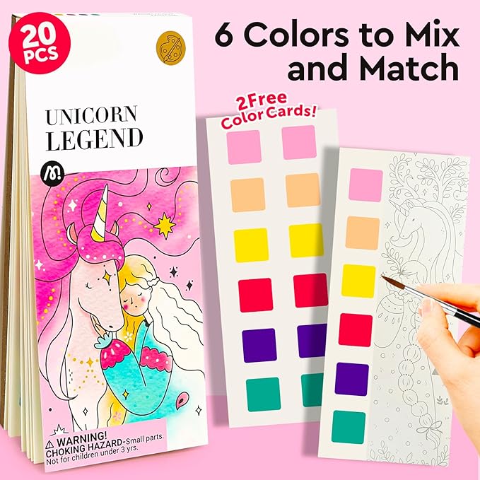 - Arts and Crafts for Kids 4-6:The book features 20 different scene patterns, each with its own set of 6 paint pans. Kids can paint the patterns with different colors or mix the paint pans to create unique shades. The thick paper prevents wear-through, allowing kids to enjoy the watercolor painting fun anytime and anywhere without worrying about the environment.