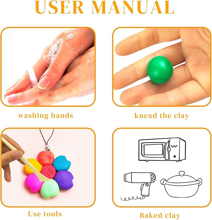 - Safety Material: Oven Bake, Non-toxic, easy modelling. Not suitable for children under 3 years old. Conforms to EN71-1/2/3 & ASTM D-4236. This product is subject to specific safety warnings (Please refer to the user manual for details before use)