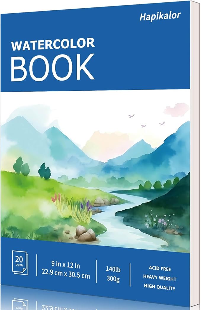 Hapikalor Watercolor Paper Pad, 9"x12" 140lb/300gsm Artist Drawing Sketch Book, Paper Pad, Art Journal, Arts and Crafts Supplies for Adults Kids, Paint Set, Colors, Canvas Painting, Watercolors, Blue