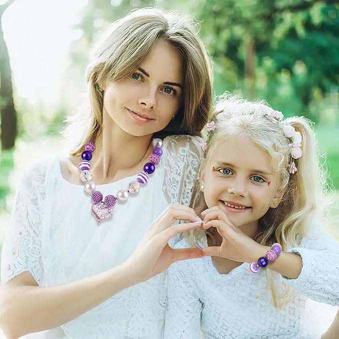 - Fashion Design - This 2-piece heart jewelry collection blends fashion with timeless charm. Featuring transparent textured beads in pink, purple, and beige, this toddler jewelry is designed to complement a wide range of girls' daily outfits, adding a touch of elegance and versatility to every look.