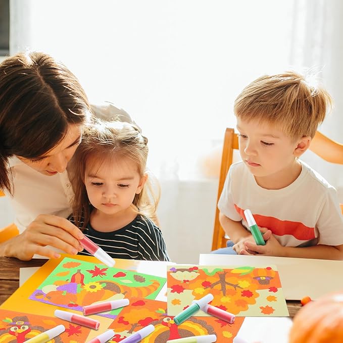 - Thanksgiving Craft Gift: celebrate Thanksgiving with these fun sand art crafts. These kids' crafts are as easy as peel and sprinkle; Kids of all ages will have a making their own custom creation before or after their turkey feast; The fall harvest sand art kit can exercise children's hand eye coordination, creativity, and imagination, and improve children's cognitive ability during the production