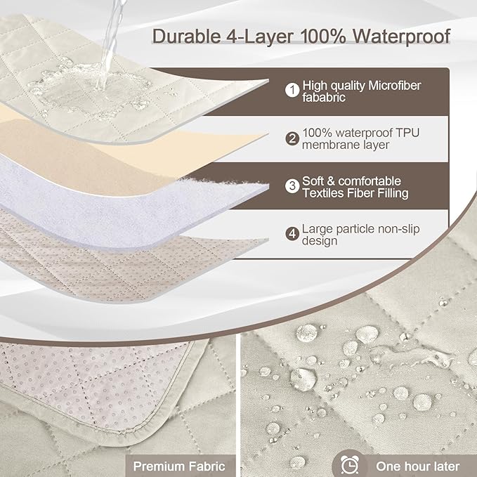 - 100% Waterproof & Comfortable: (This Recliner Couch Cover is Patented) KinCam recliner chair cover is made of high quality 100% waterproof polyester, which inner layer is filled with durable fabric, feel very cool to touch, comfortable and durable