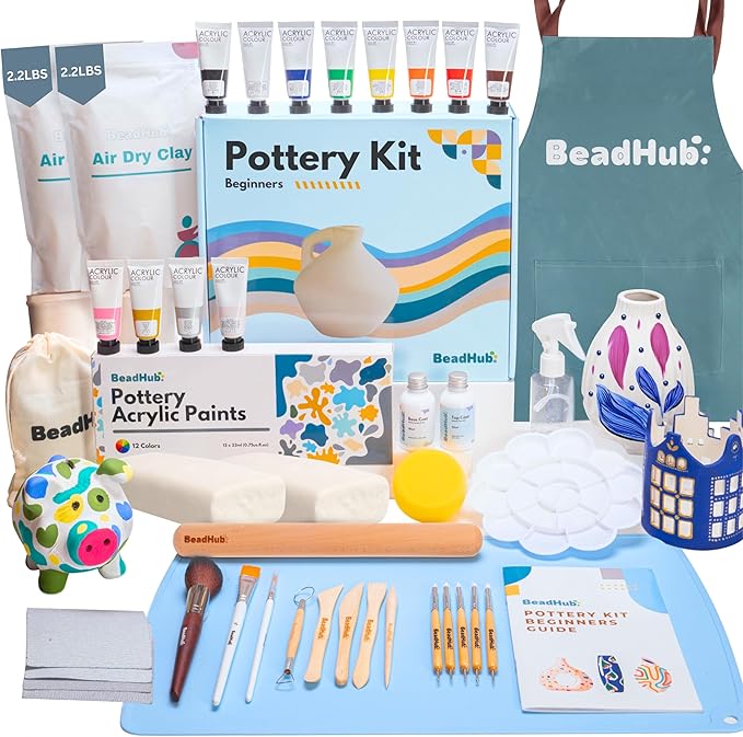 - BEADHUB BEST POTTERY STARTER KIT UNBOXING - Our air dry clay pottery kit is not just a pottery kit with tools and paint that are common and basic. We added more items that differentiates this pottery kit for adults vs. other kits normally have only clay and paint as you can see in the pottery starter kit unboxing video, truly an ideal DIY pottery kit for home use. Making this the most affordable pottery starter kits online. It contains the best air dry clay for pottery kits so you're wondering where to buy pottery starter kits, you're definitely in the right brand. Artistic gift ideas crafted for ceramic enthusiasts of all levels.