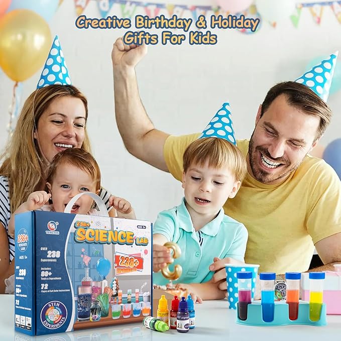 - 🌈 EARLY EDUCATION SCIENCE KIT: Our kids chemistry set features 238+ amazing science experiments to help your child develop an interest in science, capture their attention and encourage them to become problem solvers.