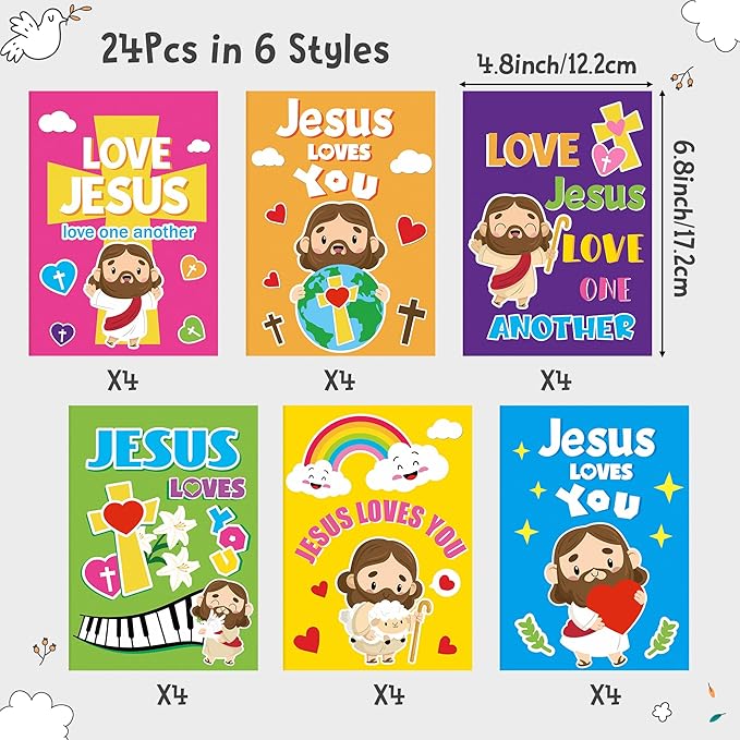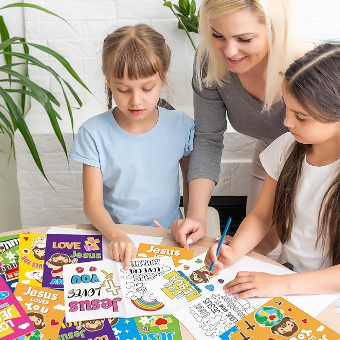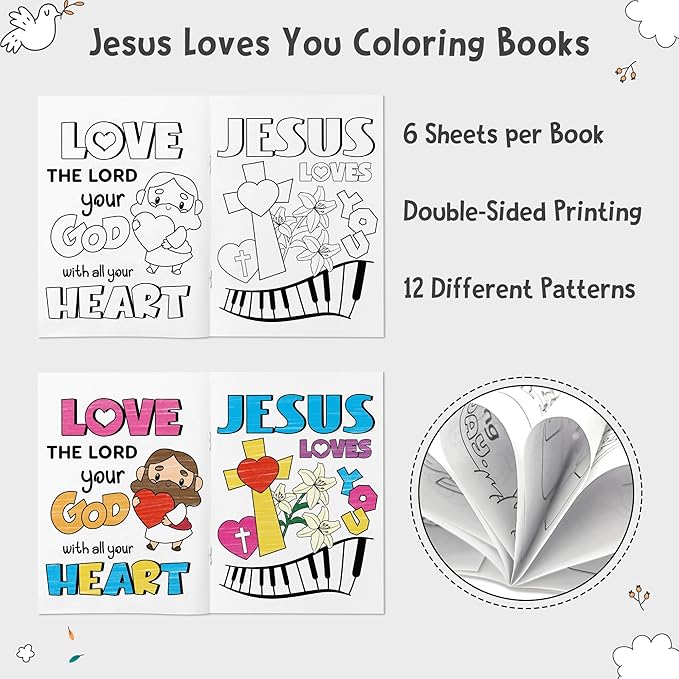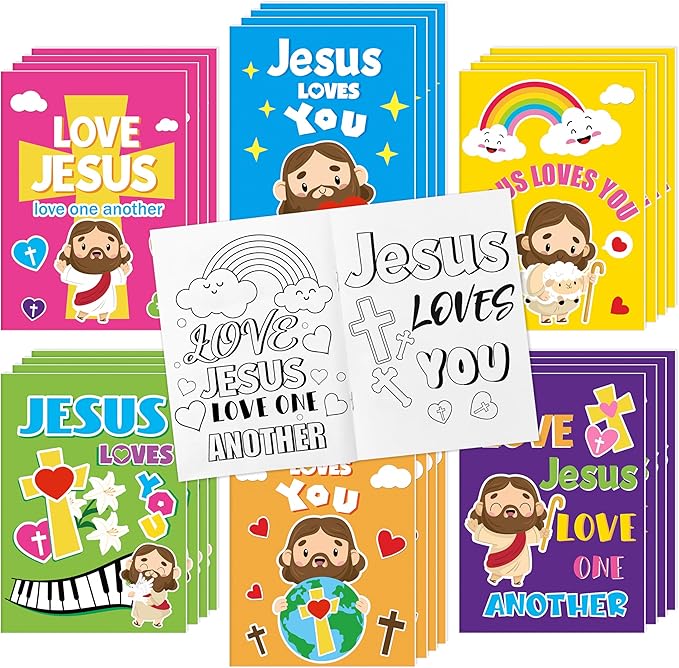 24Pcs Jesus Loves You Coloring Books - Religious Bible DIY Color-in Pages Booklet Bulk Drawing Holiday Christian Activity Supplies for Sunday School Classroom Rewards Artwork Gift for Kids