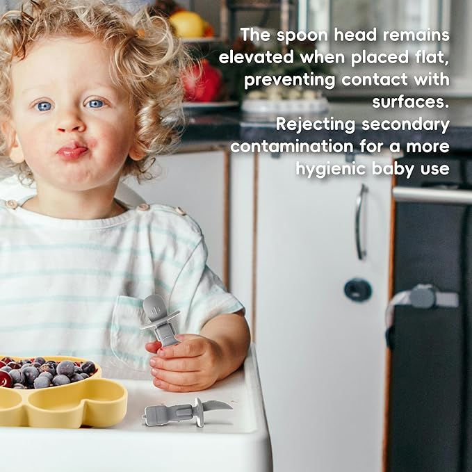 - 【Intuitive and Easy to Use】: The handle shape is designed according to the baby's grasping habits, making it comfortable and easy to hold. It can meet the baby's different holding preferences. The thick and textured handle makes it easy for baby to get food into their mouth!
