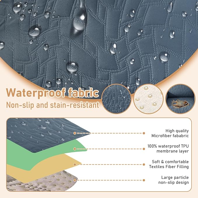 - 100% Waterproof Protection: The top of the recliner covers is coated with a waterproof layer, complemented by a TPU waterproof layer in the middle, offering a dual defense system to ensure 100% waterproof and leak-proof functionality. This innovative waterproof feature serves as a shield to safeguard your recliner from any spills, liquid mishaps, and daily wear.