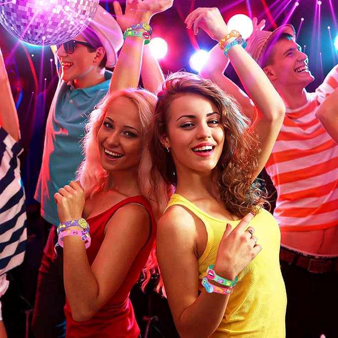 - Retro Pattern Design: Each bracelet is carefully printed with dazzling retro patterns, as if it can instantly take you back to that vibrant era. Whether it is the focus of the party or the decoration of daily life, these bracelets can make every wave full of retro style. These bracelets will definitely impress your guests