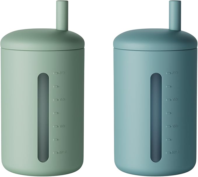 Silicone Straw Cup, 200ml Trainer Cup Toddler Training Straw Cup for Boys and Girls, Unbreakable, 100% Food Grade Silicone (Ether/Cambridge Blue)