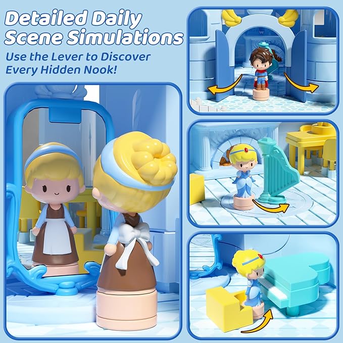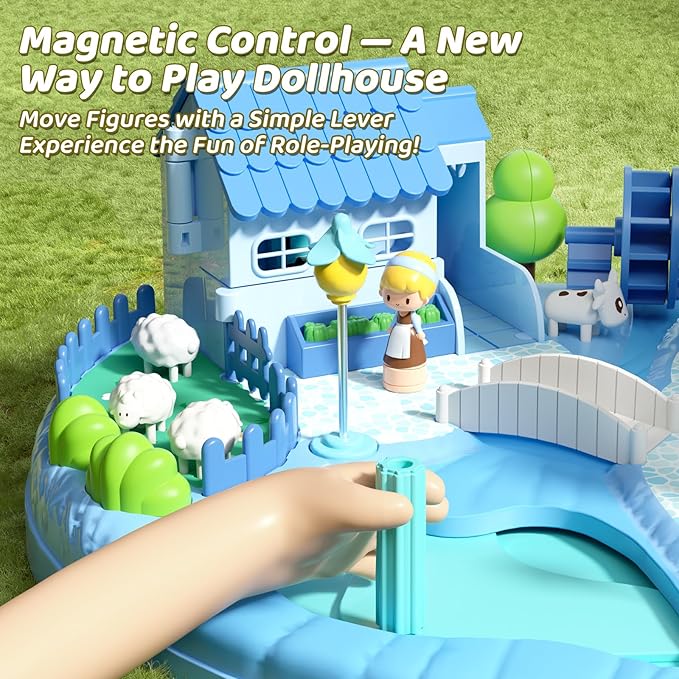 - This dollhouse playsets features multiple magnetic triggers. Move the figure to specific spots, pull the lever, enhancing interactive play between figure and movable parts. Open the dollhouse to activate lights and music, immersing kids in a magical world