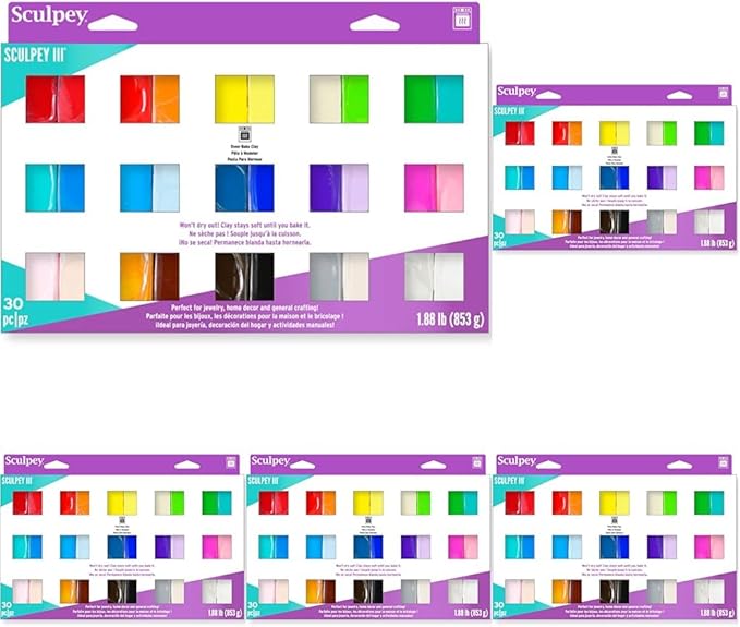 Sculpey III 30 Vibrant Colors of Polymer Oven-Bake Clay, Non Toxic 1.88 lbs., Great for Modeling, Sculpting, Holiday, DIY, Mixed Media and School Projects. Great for All Skill Levels. (Pack of 5)